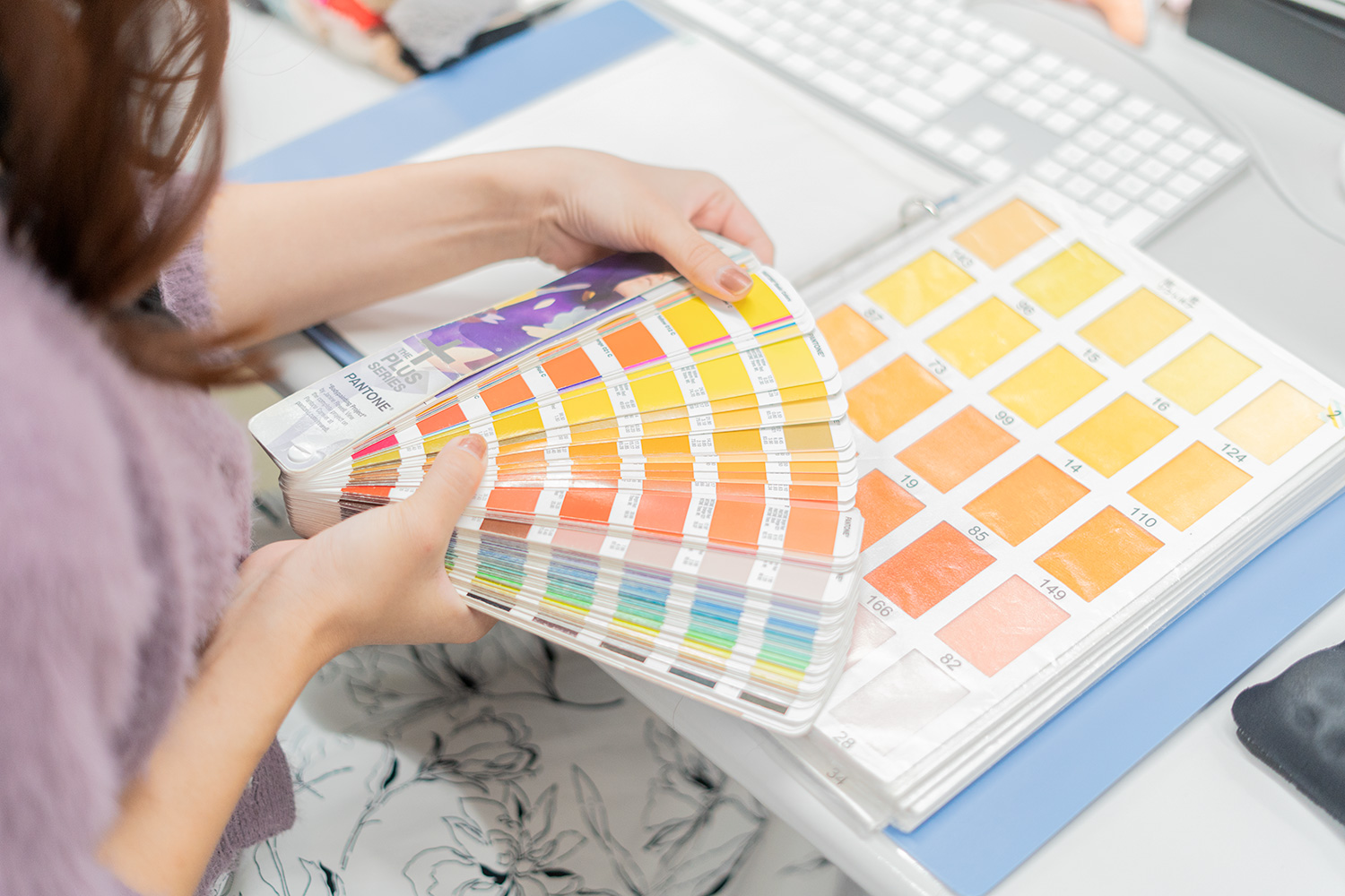 PANTONEの色見本を選ぶデザイナー