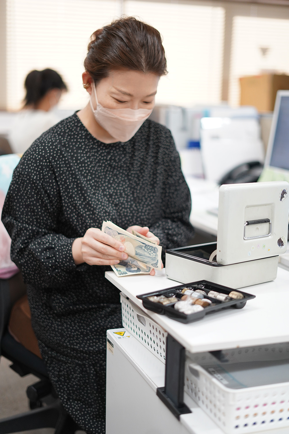 真剣な眼差しで入出金をチェック